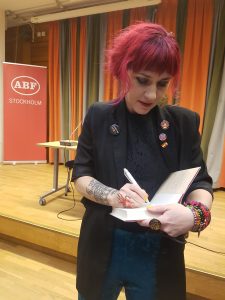 Moa-pris. Göran Eriksson hälsade alla välkomna och Ebba Witt-Brattström talade kring Moa-priset och pristagaren. ABF:s förbundssekreterare Monica Widman Lundmark överlämnade sedan priset och läste upp delar ur motiveringen till varför priset gick till just Anna Jörgensdotter. Anna höll därefter ett mycket fint tacktal och läste ett avsnitt ur sin roman Solidärer.